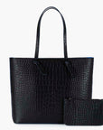 Milano Large Leather Shoulder Tote Bag - Black Croc Print