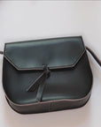 Small shoulder bag with flap opening and magnetic closure, handcrafted with our signature lightweight calfskin leather. Open pocket inside and adjustable shoulder strap. Suede lined interior.